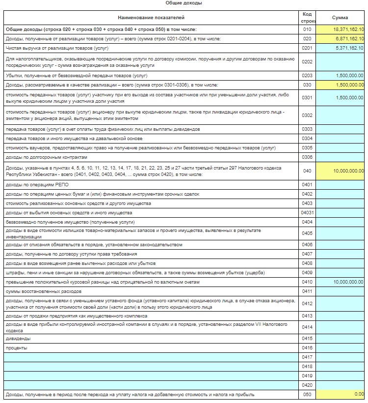 Налоговый комитет сообщил, что с марта 2021 года сумма в строке 010 приложения №1 к Расчету налога с оборота автоматически формируются исходя из данных ЭСФ, таможенной декларации и онлайн-ККМ по осуществляемой деятельности. В этом случае в строках 0201–0203 и 0301–0306 общая сумма доходов распределяется по соответствующему виду дохода: